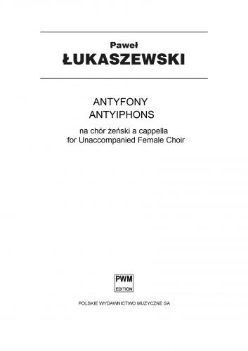 The first collection in the Coro Religijne series, consisting of pieces for female choir a cappella arranged by Paweł Łukaszewski. There are 4 antiphons: O Radix Jesse, O Clavis David, O Oriens and O Rex Gentium. Each antiphon retains the unique nature of prayer, harmony dominated by chords of seconds adds extra spice. The composer frequently operates on dense chord blocks, however there is also no lack of polyphonic passages or dialogue between voices. This is an important collection, enriching the somewhat scarce literature for female choir.