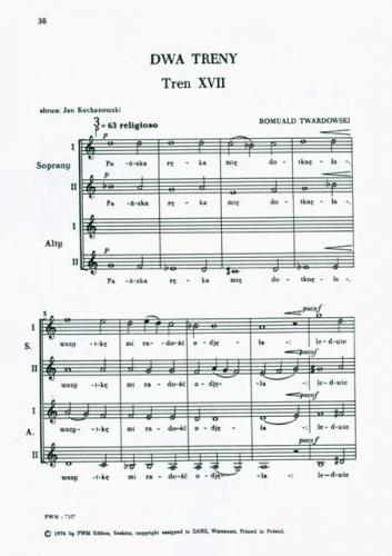 Study score does not authorise the copying and preparation of performance materials. In order to legally acquire choral scores, at a preferential price for the ensemble, please send an e-mail to: sales@pwm.com.pl