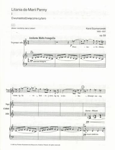 Fragments of ''Litany'' (op.59) are Karol Szymanowskis penultimate work. They were written in the years 1930-1933 to the words of a litany by the poet Jerzy Liebert. This is important from the point of view of the style of the composer's work.