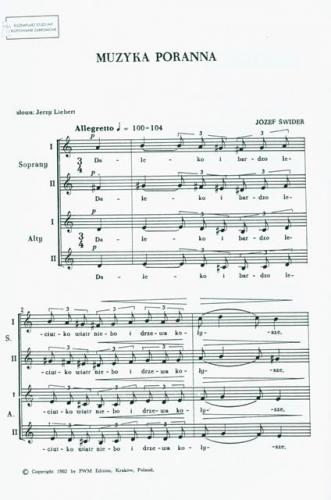 Study score does not authorise the copying and preparation of performance materials. In order to legally acquire choral scores, at a preferential price for the ensemble, please send an e-mail to: sales@pwm.com.pl or choose choral score here