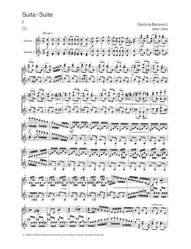 A cycle of seven short pieces, very typical of Grażyna Bacewicz's musical poetics of this period. (...) The piquancy of this essentially very simple Suite consists in combining the Baroque gestus (more Telemann- than Bach-like) with harsh diatonic harmonies coloured occasionally by chromaticism ''enveloped'', now and then, in quasi-tonal progressions of more relict-sentimental than ironic character.