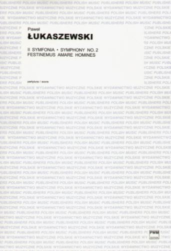 Written in 2003-2005 to a commission from the International Festival of University Choirs Universitas Cantat, Symphony II Festinemus amare homines for two sopranos, two mixed choirs, two pianos and orchestra, has a dedication: Johannes Paulus II in memoriam. A short but very profound text by the recently deceased author, Fr. Jan Twardowski, conveys the meaning flowing from the teachings of the Great Pope in an extraordinary way: ''we constantly love too little and too late.'' Lasting about 25 minutes, the work consists of four movements: Festinemus (Let us hurry), Tempus (Time), Amamus (we love), Decedunt (They leave.)