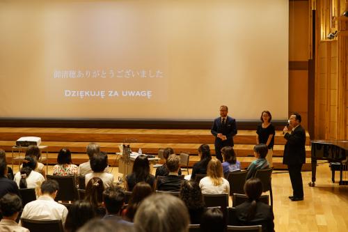 Z inicjatywy polskiego pianisty Ignacego Lisieckiego, w ostatnich miesiącach o twórczości Karola Szymanowskiego w Japonii było głośno. Najpierw, 18 czerwca, na antenie japońskiej telewizji Asahi, w nadawanym nieprzerwanie od 1969 roku programie dotyczącym muzyki klasycznej „Daimei no nai ongakukai”, przed 5 milionami odbiorców, japoński skrzypek, rektor Tokyo University of Arts prof. Kazuki Sawa przedstawił sylwetkę Karola Szymanowskiego i wraz z Ignacym Lisieckim wykonał Sonatę d-moll op. 9 na skrzypce i fortepian.