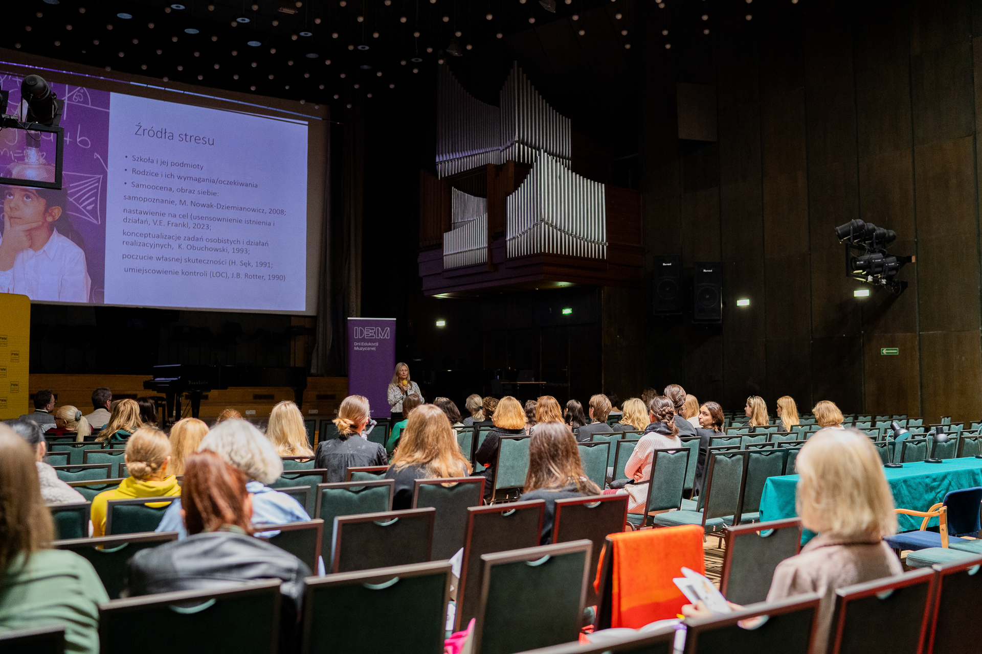 Następnie zostały poprowadzone trzy wykłady kierowane do wszystkich uczestników, zarówno instrumentalistów, jak i teoretyków muzyki oraz muzykologów. Joanna Łukasik poruszyła zagadnienia z zakresu psychologii, koncentrując się na właściwej komunikacji nauczyciela z uczniem i jego rodzicami. Prowadząca wskazała, jak rozmawiać o sukcesach oraz trudnościach w sposób, który pozytywnie wpływa na rozwój młodego muzyka. Wystąpienie wzbogaciła licznymi anegdotami i przykładami z własnej praktyki zawodowej.