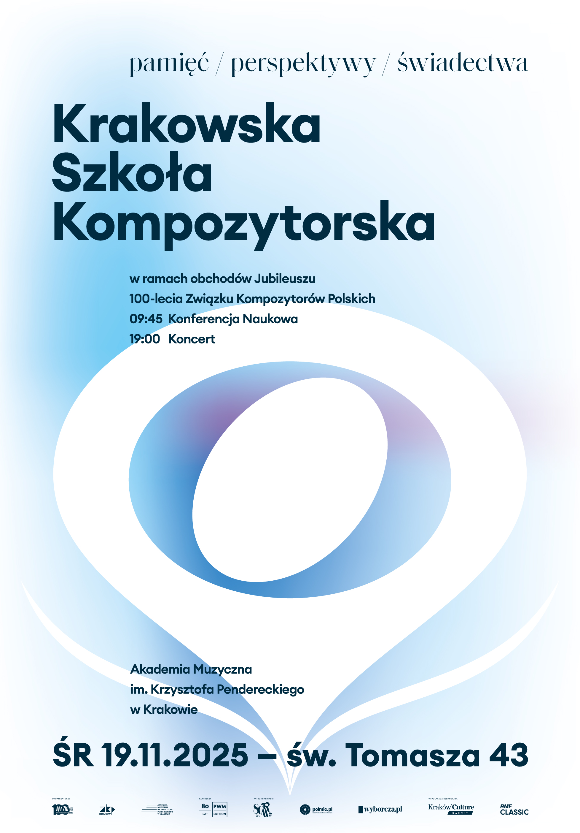 Związek Kompozytorów Polskich Odział w Krakowie oraz Akademia Muzyczna im. Krzysztofa Pendereckiego w Krakowie zapraszają na Konferencję Naukową i Koncert w ramach obchodów Jubileuszu 100-lecia Związku Kompozytorów Polskich, pt. "KRAKOWSKA SZKOŁA KOMPOZYTORSKA. Pamięć – perspektywy – świadectwa", której partnerem jest Polskie Wydawnictwo Muzyczne.