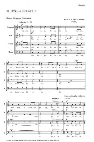 Partytura studyjna nie upoważnia do kopiowania i sporządzania głosów wykonawczych. W celu legalnego nabycia większej ilości partytur chóralnych, po preferencyjnych cenach dla zespołu, prosimy wysłać e-mail pod adres: handel@pwm.com.pl