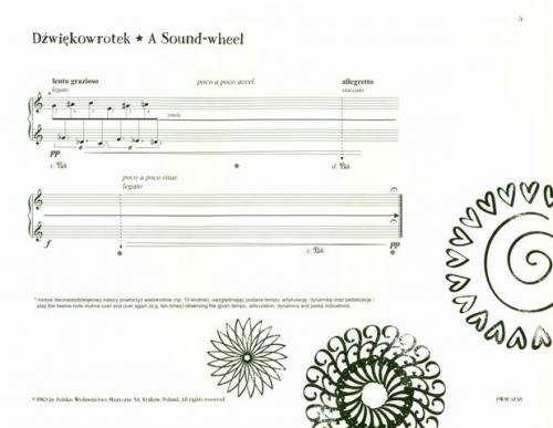 Zbiór zawiera 8 miniatur, w których zastosowano współczesny zapis notacji. Propozycje spodobają się młodym i uzdolnionym pianistom z twórczą wyobraźnią.