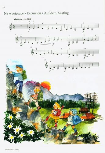 Kolorowo ilustrowany zbiór zawiera krótkie utwory na skrzypce i fortepian, przeznaczone dla uczniów pierwszych klas skrzypiec. Zamiarem autora było nie tylko spełnienie celów dydaktycznych (zmiana strun, początki zmiany pozycji, zmiany dynamiki, efekty wyrazowe), ale i zapewnienie młodym muzykom czerpania przyjemności z gry. Partia fortepianu jest na tyle prosta, aby mógł wykonać ją drugi uczeń.