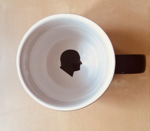 Elegancki czarny kubek kryje na dnie grafikę z profilem Stanisława Moniuszki. Kubek powstał na pamiątkę Roku Moniuszkowskiego.