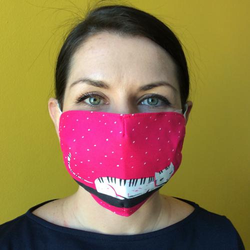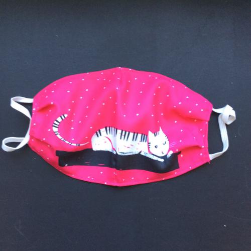 Czerwona maseczka ochronna z motywem kota i elastyczną gumką na uszy