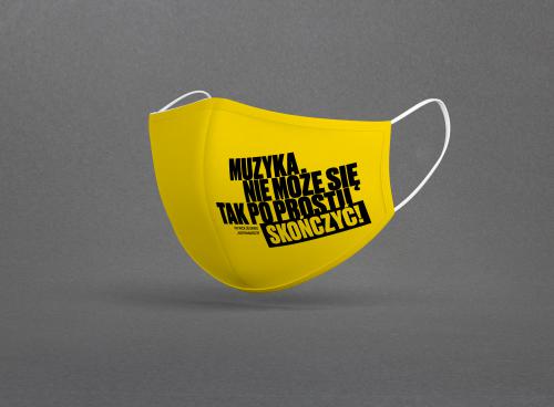 Żółta maseczka ochronna z cytatem i elastyczną gumką na uszy