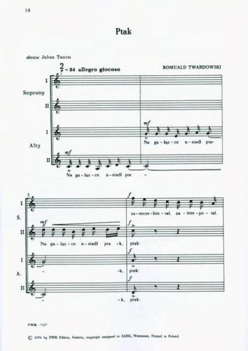 Partytura studyjna nie upoważnia do kopiowania i sporządzania głosów wykonawczych. W celu legalnego nabycia większej ilości partytur chóralnych, po preferencyjnych cenach dla zespołu, prosimy wysłać e-mail pod adres: handel@pwm.com.pl