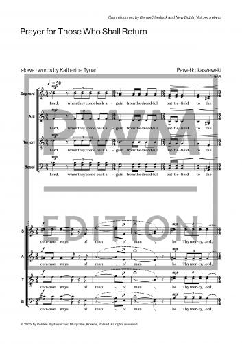 Partytura studyjna nie upoważnia do kopiowania i sporządzania głosów wykonawczych. W celu legalnego nabycia większej ilości partytur chóralnych, po preferencyjnych cenach dla zespołu, prosimy wysłać e-mail pod adres: handel@pwm.com.pl lub zajrzeć tutaj