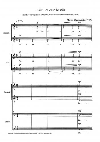 ...similes esse bestiis - utwór na chór a capella - skomponowany został w 1997. Jego prawykonanie odbyło się w 1998 r. na VIII Międzynarodowym Festiwalu Muzyki Sakralnej ''Gaude Mater'' w Częstochowie. Utwór został wówczas wykonany pzez Polski Chór Kameralny ''Schola Cantorum Gedanensis'' pod dyr. Jana Łukaszewskiego. Biblijny tekst tego utworu zaczerpnięty jest z Księgi Koheleta