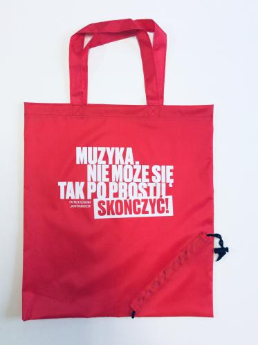 Torba na zakupy, główna komora otwarta, podwójne uchwyty. Unikalny system składania, dzięki ciąganemu sznureczkowi. Poliester