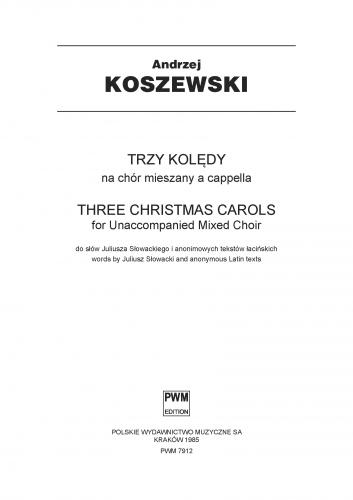 Trzy kolędy w opracowaniu na mieszany chór. Zawiera popularną kolędę ''Chrystus Pan się narodził'' i dwa utwory do tekstów łacińskich.