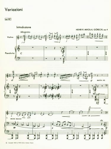 Dzieło to wykazuje inspirację Góreckiego muzyką kompozytora Młodej Polski Karola Szymanowskiego, zwłaszcza tą pochodzącą z jego ostatniego okresu twórczości zwanego narodowym. Już krótki motyw wstępu i wyłaniający się z niego bezpośrednio temat, będący impulsem dla następujących po nim 9 krótkich wariacji, są jakby wyjęte ze Stabat Mater Szymanowskiego, a ściślej mówiąc ze wstępnego tematu sopranu. Ponadto sposób przeobrażania motywu ludowego, szorstki język harmoniczny oraz typy faktur w kolejnych wariacjach wykazują bezpośrednie analogie stylu Góreckiego z Szymanowskim.