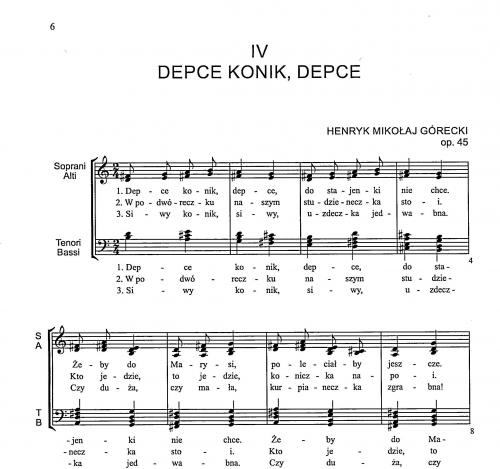 Partytura studyjna nie upoważnia do kopiowania i sporządzania głosów wykonawczych. W celu legalnego nabycia większej ilości partytur chóralnych, po preferencyjnych cenach dla zespołu, prosimy wysłać e-mail pod adres: handel@pwm.com.pl